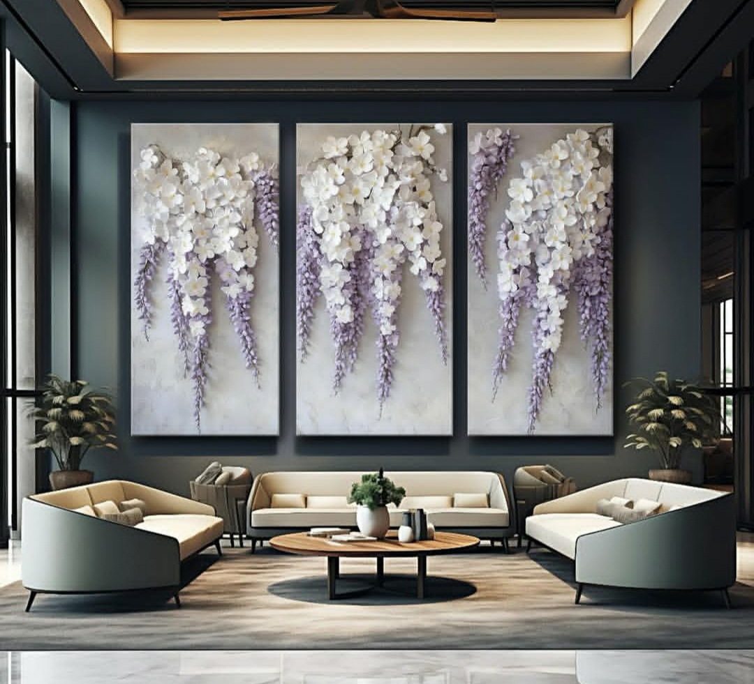 تابلو دکوراتیو گل یاس برجسته مدرن و زیبا اثری زنده وگرم برای خانه زیبای دوستان