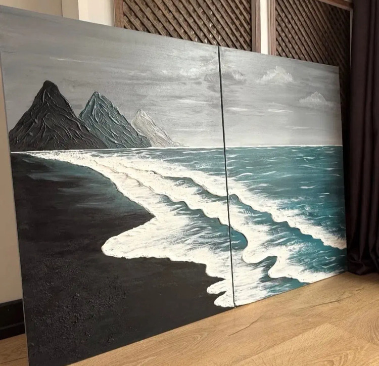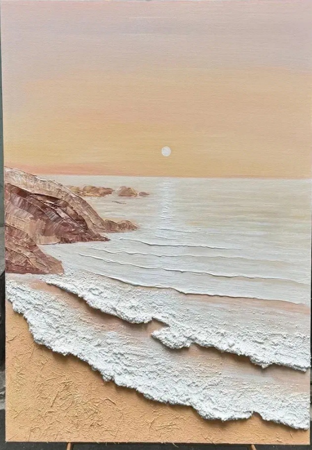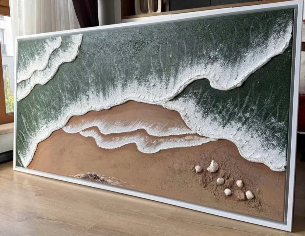 تابلو برجسته و زیبا و تماما کار دست بوده و امواج دریا و ساحل در طرح های زیادی قابل اجراست حتی دوستان میتونن عکسی از منظره دریا بدن و ما اونو براتون انجام بدیم