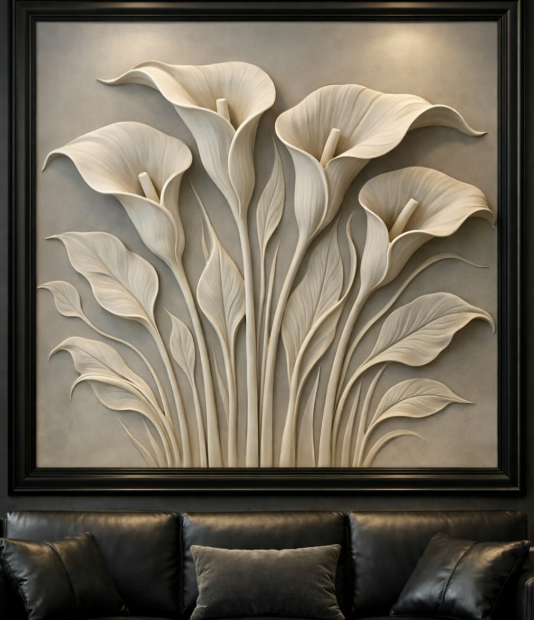 تابلو گل شیپوری برجسته بسیار زیبا و ظریف کار شده اجراشده روی mdf
